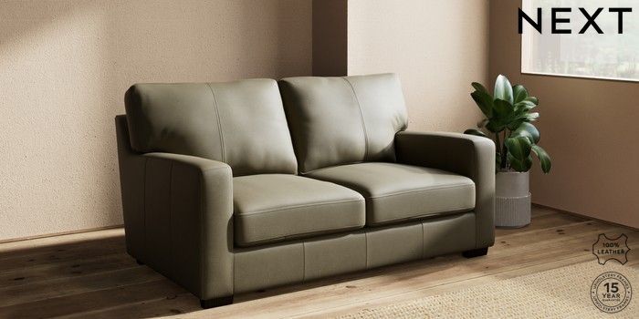 7.0.3 Buy Brooklyn Leather 2 Seater Sofa Turin Leather Moss Green Slim Block - Dark from the Next UK online shop Click here to use our accessible website