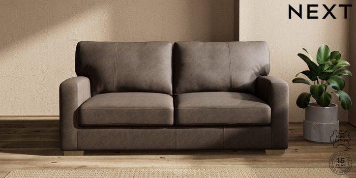 6.12.1 Buy Brooklyn Leather 3 Seater Small Sofa Antiqued Leather Dark Brown Slim Block - Light from the Next UK online shop Click here to use our accessible website