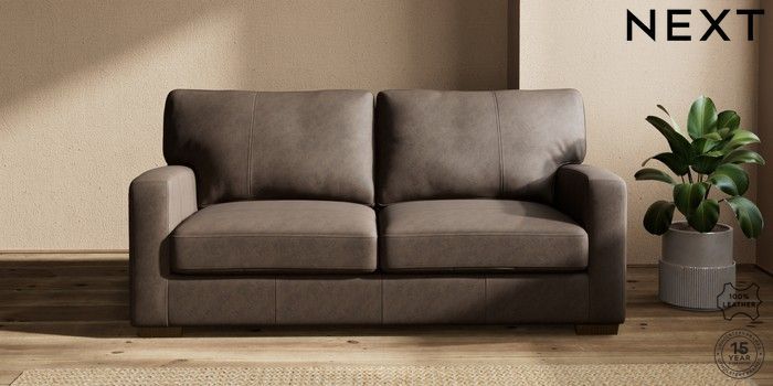 6.12.1 Buy Brooklyn Leather 3 Seater Small Sofa Antiqued Leather Dark Brown Slim Block - Mid from the Next UK online shop Click here to use our accessible website