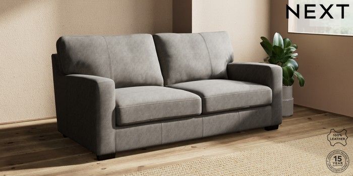 7.0.3 Buy Brooklyn Leather 3 Seater Small Sofa Antiqued Leather Grey Slim Block - Dark from the Next UK online shop Click here to use our accessible website