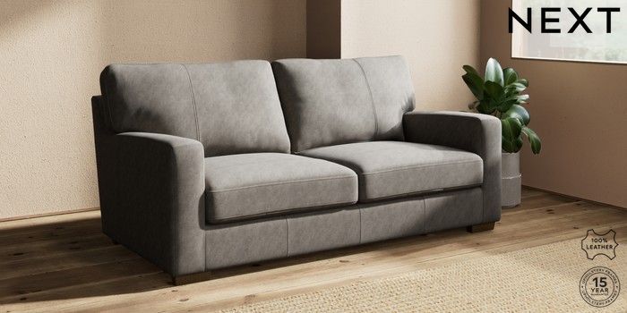 7.0.3 Buy Brooklyn Leather 3 Seater Small Sofa Antiqued Leather Grey Slim Block - Mid from the Next UK online shop Click here to use our accessible website