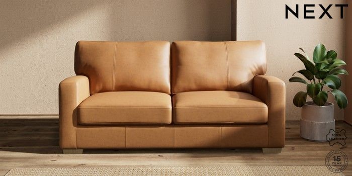 6.12.1 Buy Brooklyn Leather 3 Seater Small Sofa Antiqued Leather Light Tan Brown Slim Block - Light from the Next UK online shop Click here to use our accessible website