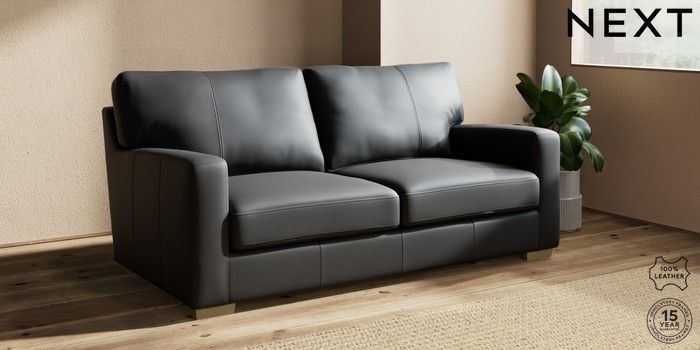 7.0.3 Buy Brooklyn Leather 3 Seater Small Sofa Columbia Black Slim Block - Light from the Next UK online shop Click here to use our accessible website