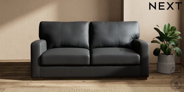 6.12.1 Buy Brooklyn Leather 3 Seater Small Sofa Columbia Black Slim Block - Mid from the Next UK online shop Click here to use our accessible website