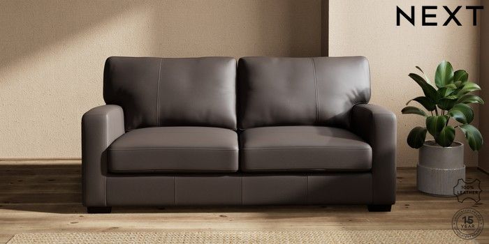 6.12.1 Buy Brooklyn Leather 3 Seater Small Sofa Columbia Dark Brown Slim Block - Dark from the Next UK online shop Click here to use our accessible website