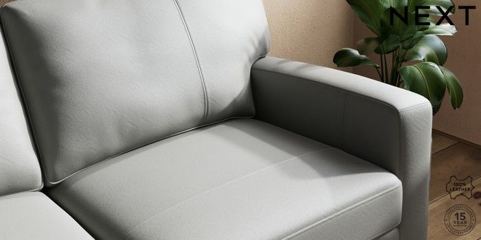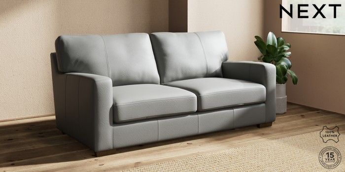 7.0.3 Buy Brooklyn Leather 3 Seater Small Sofa Columbia French Grey Slim Block - Mid from the Next UK online shop Click here to use our accessible website