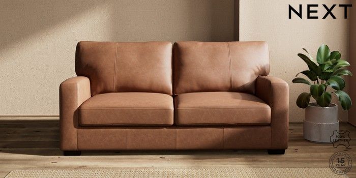 6.12.1 Buy Brooklyn Leather 3 Seater Small Sofa Rustic Leather Light Brown Slim Block - Dark from the Next UK online shop Click here to use our accessible website