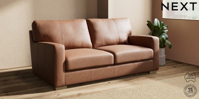 7.0.3 Buy Brooklyn Leather 3 Seater Small Sofa Rustic Leather Light Brown Slim Block - Light from the Next UK online shop Click here to use our accessible website