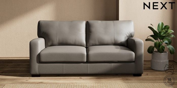 6.12.1 Buy Brooklyn Leather 3 Seater Small Sofa Turin Leather French Grey Slim Block - Dark from the Next UK online shop Click here to use our accessible website