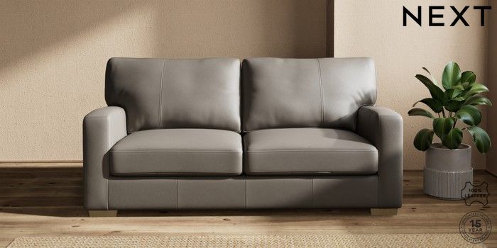 6.12.1 Buy Brooklyn Leather 3 Seater Small Sofa Turin Leather French Grey Slim Block - Light from the Next UK online shop Click here to use our accessible website