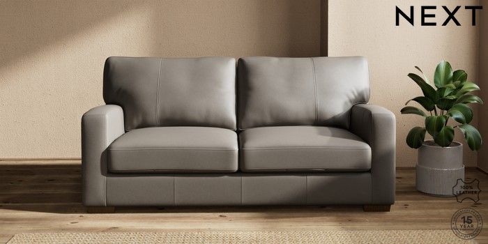 6.12.1 Buy Brooklyn Leather 3 Seater Small Sofa Turin Leather French Grey Slim Block - Mid from the Next UK online shop Click here to use our accessible website