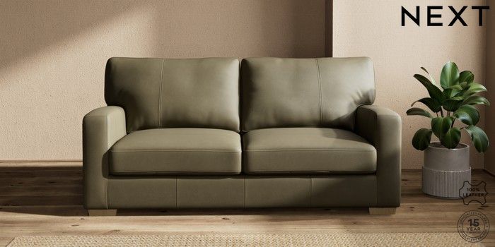6.12.1 Buy Brooklyn Leather 3 Seater Small Sofa Turin Leather Moss Green Slim Block - Light from the Next UK online shop Click here to use our accessible website