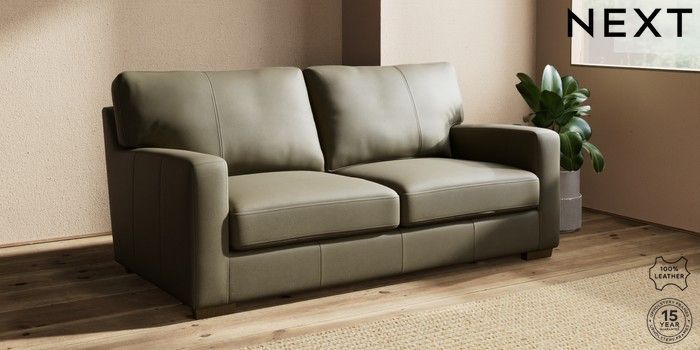7.0.3 Buy Brooklyn Leather 3 Seater Small Sofa Turin Leather Moss Green Slim Block - Mid from the Next UK online shop Click here to use our accessible website