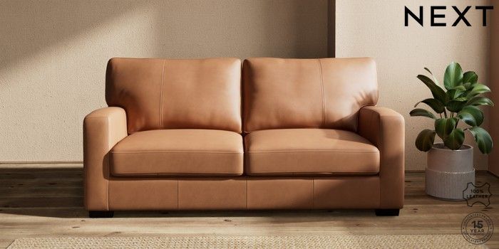 6.12.1 Buy Brooklyn Leather 3 Seater Small Sofa Turin Leather Tan Brown Slim Block - Dark from the Next UK online shop Click here to use our accessible website