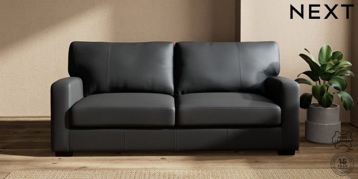 6.12.1 Buy Brooklyn Leather 3 Seater Sofa Columbia Black Slim Block - Dark from the Next UK online shop Click here to use our accessible website