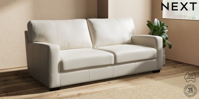 7.0.3 Buy Brooklyn Leather 3 Seater Sofa Columbia Silver Grey Slim Block - Dark from the Next UK online shop Click here to use our accessible website