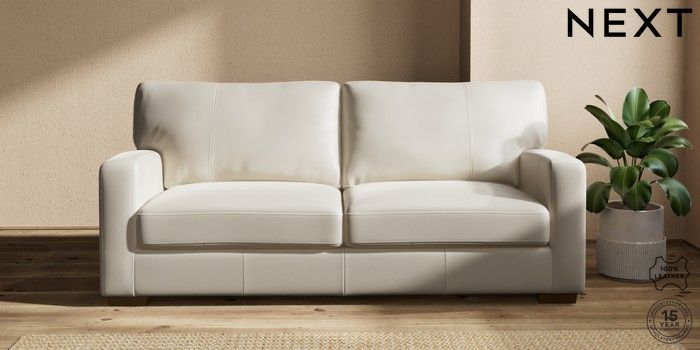 6.12.1 Buy Brooklyn Leather 3 Seater Sofa Columbia Silver Grey Slim Block - Mid from the Next UK online shop Click here to use our accessible website