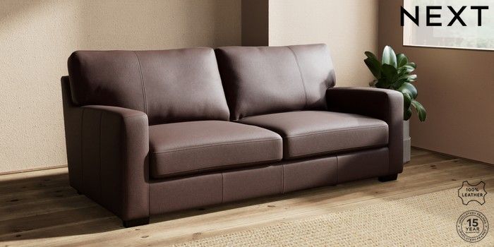 7.0.3 Buy Brooklyn Leather 3 Seater Sofa Rustic Leather Dark Brown Slim Block - Dark from the Next UK online shop Click here to use our accessible website