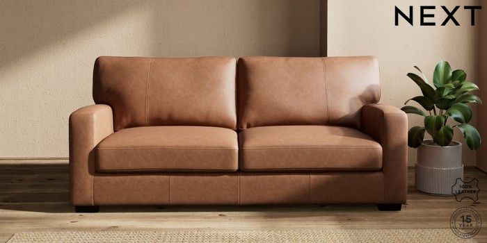 6.12.1 Buy Brooklyn Leather 3 Seater Sofa Rustic Leather Light Brown Slim Block - Dark from the Next UK online shop Click here to use our accessible website