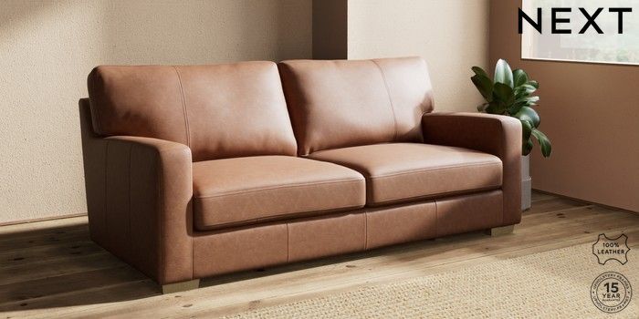 7.0.3 Buy Brooklyn Leather 3 Seater Sofa Rustic Leather Light Brown Slim Block - Light from the Next UK online shop Click here to use our accessible website