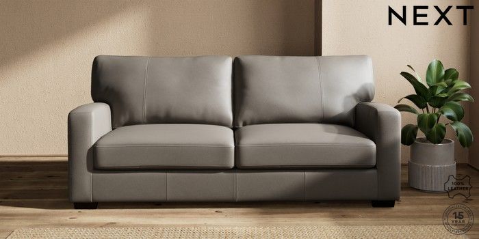 6.12.1 Buy Brooklyn Leather 3 Seater Sofa Turin Leather French Grey Slim Block - Dark from the Next UK online shop Click here to use our accessible website