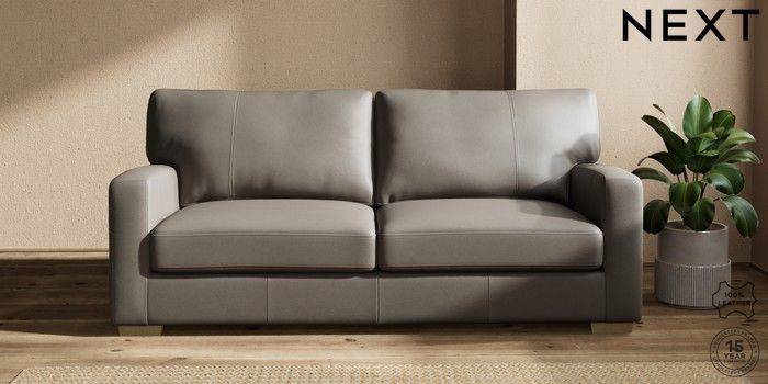 6.12.1 Buy Brooklyn Leather 3 Seater Sofa Turin Leather French Grey Slim Block - Light from the Next UK online shop Click here to use our accessible website