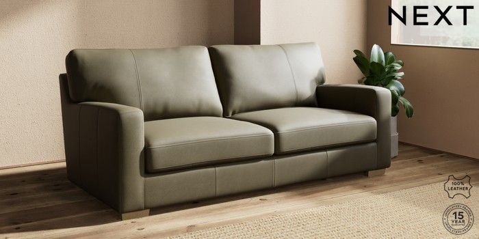 7.0.3 Buy Brooklyn Leather 3 Seater Sofa Turin Leather Moss Green Slim Block - Light from the Next UK online shop Click here to use our accessible website