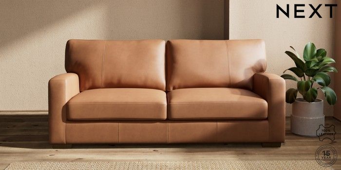 6.12.1 Buy Brooklyn Leather 3 Seater Sofa Turin Leather Tan Brown Slim Block - Mid from the Next UK online shop Click here to use our accessible website