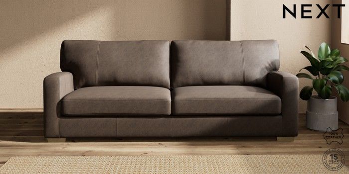 6.12.1 Buy Brooklyn Leather 4 Seater Sofa Antiqued Leather Dark Brown Slim Block - Light from the Next UK online shop Click here to use our accessible website
