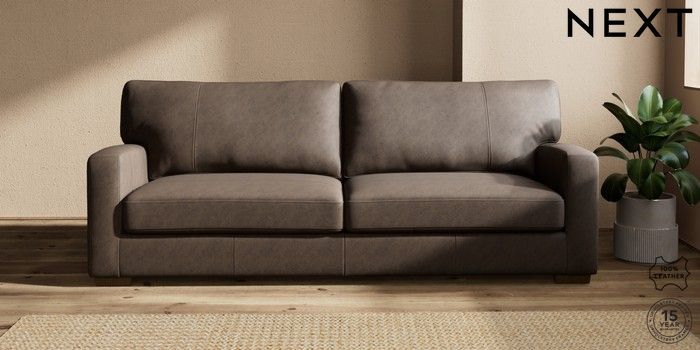 6.12.1 Buy Brooklyn Leather 4 Seater Sofa Antiqued Leather Dark Brown Slim Block - Mid from the Next UK online shop Click here to use our accessible website