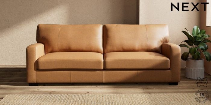6.12.1 Buy Brooklyn Leather 4 Seater Sofa Antiqued Leather Light Tan Brown Slim Block - Dark from the Next UK online shop Click here to use our accessible website