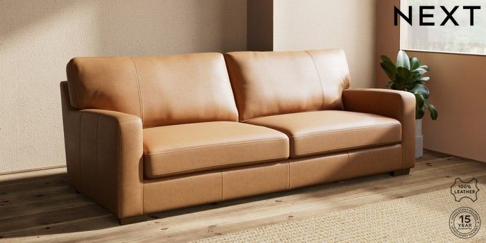 7.0.3 Buy Brooklyn Leather 4 Seater Sofa Antiqued Leather Light Tan Brown Slim Block - Mid from the Next UK online shop Click here to use our accessible website