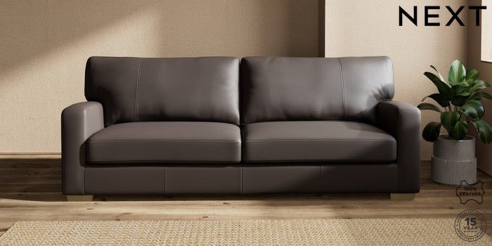 6.12.1 Buy Brooklyn Leather 4 Seater Sofa Columbia Dark Brown Slim Block - Light from the Next UK online shop Click here to use our accessible website