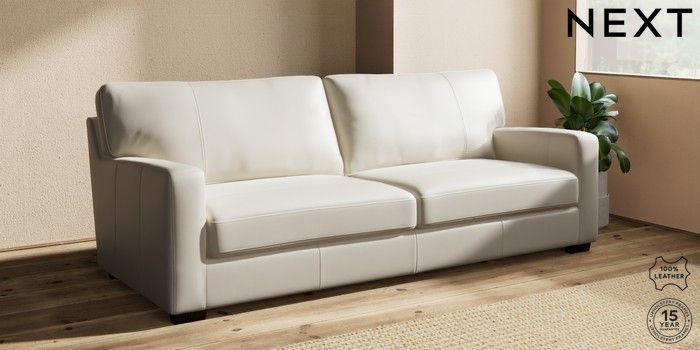 7.0.3 Buy Brooklyn Leather 4 Seater Sofa Columbia Silver Grey Slim Block - Dark from the Next UK online shop Click here to use our accessible website