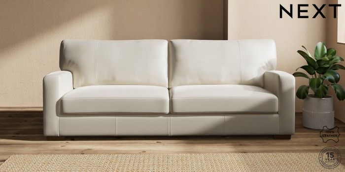 6.12.1 Buy Brooklyn Leather 4 Seater Sofa Columbia Silver Grey Slim Block - Mid from the Next UK online shop Click here to use our accessible website