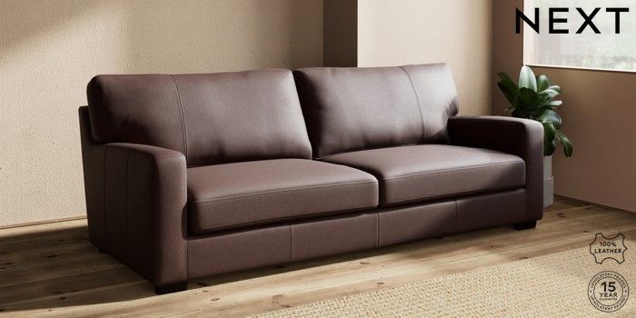 7.0.3 Buy Brooklyn Leather 4 Seater Sofa Rustic Leather Dark Brown Slim Block - Dark from the Next UK online shop Click here to use our accessible website