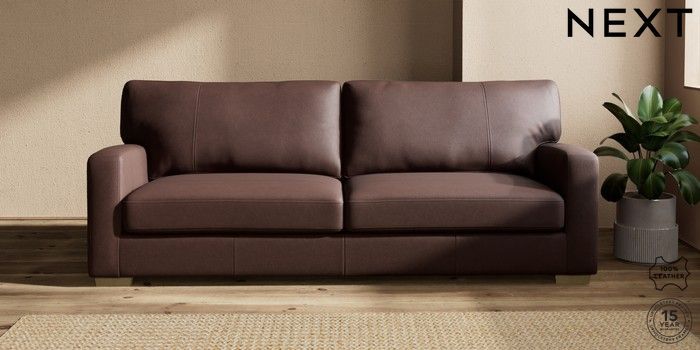 6.12.1 Buy Brooklyn Leather 4 Seater Sofa Rustic Leather Dark Brown Slim Block - Light from the Next UK online shop Click here to use our accessible website