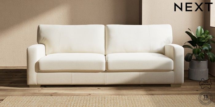 6.12.1 Buy Brooklyn Leather 4 Seater Sofa Turin Leather Cream Slim Block - Light from the Next UK online shop Click here to use our accessible website