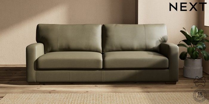 6.12.1 Buy Brooklyn Leather 4 Seater Sofa Turin Leather Moss Green Slim Block - Mid from the Next UK online shop Click here to use our accessible website