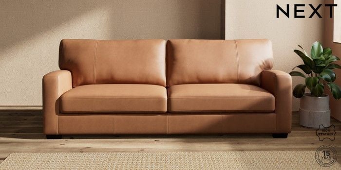 6.12.1 Buy Brooklyn Leather 4 Seater Sofa Turin Leather Tan Brown Slim Block - Dark from the Next UK online shop Click here to use our accessible website
