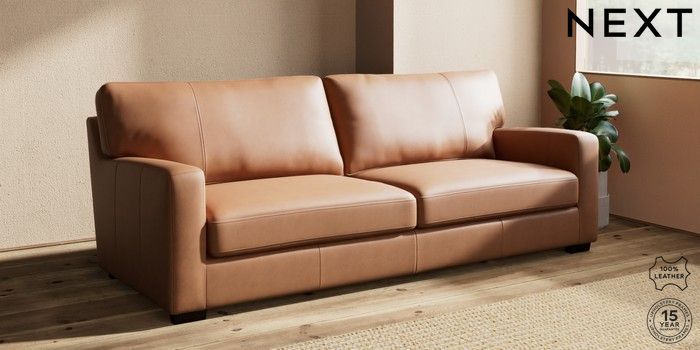 7.0.3 Buy Brooklyn Leather 4 Seater Sofa Turin Leather Tan Brown Slim Block - Dark from the Next UK online shop Click here to use our accessible website