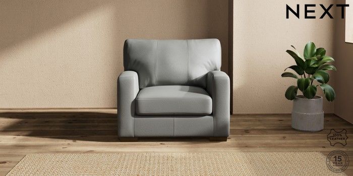 6.12.1 Buy Brooklyn Leather Armchair Columbia French Grey Slim Block - Mid from the Next UK online shop Click here to use our accessible website