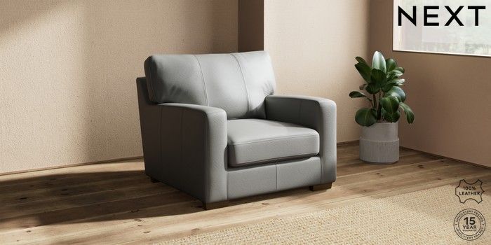 7.0.3 Buy Brooklyn Leather Armchair Columbia French Grey Slim Block - Mid from the Next UK online shop Click here to use our accessible website
