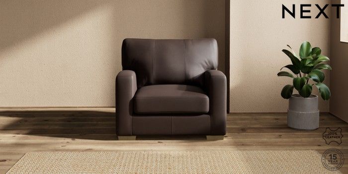 6.12.1 Buy Brooklyn Leather Armchair Turin Leather Dark Brown Slim Block - Light from the Next UK online shop Click here to use our accessible website
