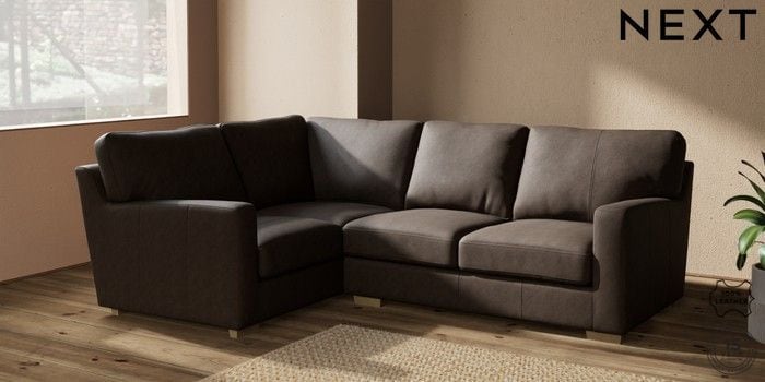 6.12.1 Buy Brooklyn Leather Small Corner Sofa - Left Hand Antiqued Leather Dark Brown Slim Block - Light from the Next UK online shop Click here to use our accessible website