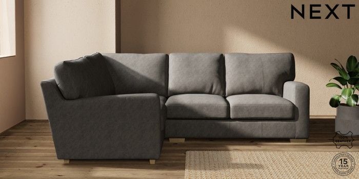 7.0.3 Buy Brooklyn Leather Small Corner Sofa - Left Hand Antiqued Leather Grey Slim Block - Light from the Next UK online shop Click here to use our accessible website