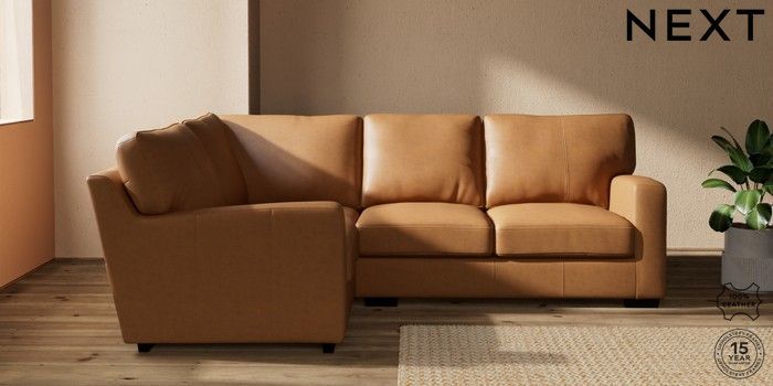 7.0.3 Buy Brooklyn Leather Small Corner Sofa - Left Hand Antiqued Leather Light Tan Brown Slim Block - Dark from the Next UK online shop Click here to use our accessible website