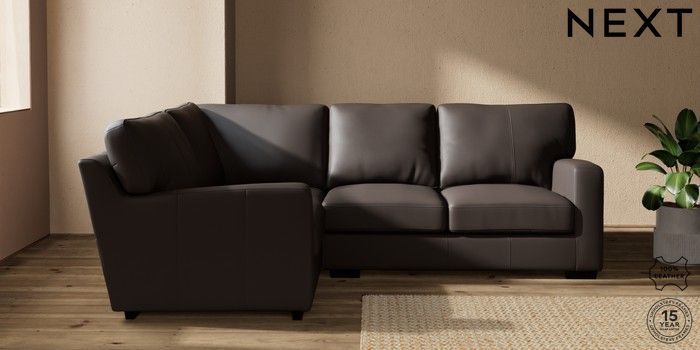 7.0.3 Buy Brooklyn Leather Small Corner Sofa - Left Hand Columbia Dark Brown Slim Block - Dark from the Next UK online shop Click here to use our accessible website
