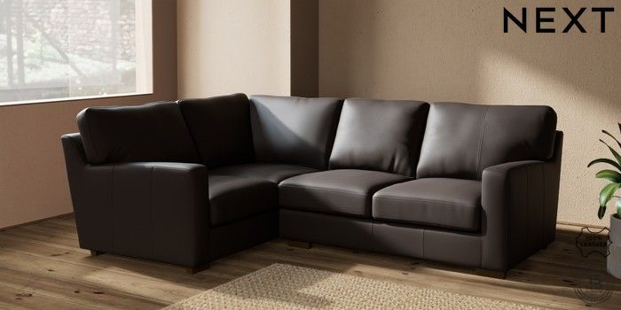 6.12.1 Buy Brooklyn Leather Small Corner Sofa - Left Hand Columbia Dark Brown Slim Block - Mid from the Next UK online shop Click here to use our accessible website