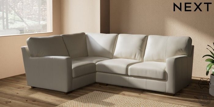 6.12.1 Buy Brooklyn Leather Small Corner Sofa - Left Hand Columbia Silver Grey Slim Block - Mid from the Next UK online shop Click here to use our accessible website